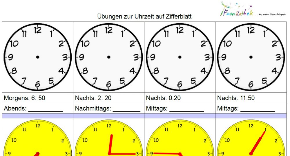 Das Beste ist übrigens, dass Eltern mit ihren Kindern die Uhrzeit Tag für Tag konkret im Alltag üben können: Wann wollten wir los und in wieviel Stunden gibt es Abendessen? Wie sieht das auf dem Zifferblatt aus, wenn Schulbeginn ist? Und die erste Pause? So dass es auch die zähesten kleinen „Zeit-Verweigerer“ irgendwann einmal im Kopf haben werden…